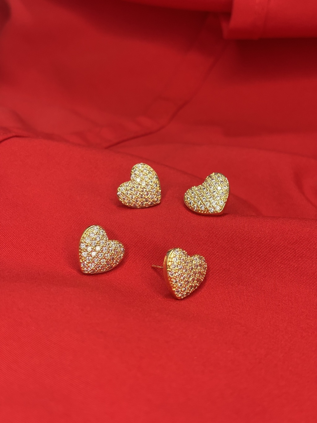Este brinco é a escolha perfeita para quem deseja unir romantismo e sofisticação em um único acessório. Com seu design em formato de coração minuciosamente cravejado, ele reflete luz em cada detalhe, trazendo um brilho suave e elegante ao seu visual.